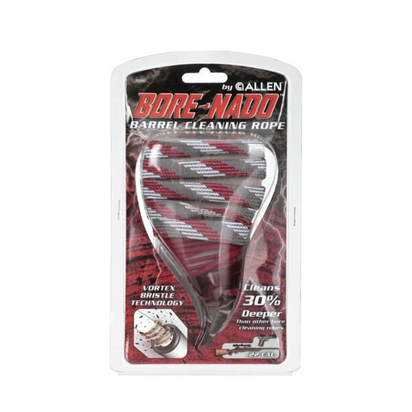 The revolutionary BORE-NADO™ barrel cleaning rope makes taking care of your firearm easy. Simply add a solvent of your choice like our CyClean to the cleaning rope and clean from breach to muzzle in a single stroke, repeating as necessary until clean. The small end of the rope has a weighted brass bore guide to make guiding the rope through your firearm’s barrel easy. The vortex bristle technology uses copper brushes to clean fouling and carbon as it passes through your barrel and the built-in braided swab sweeps it away. Keep a BORE-NADO™ in your range bag or gun case for quick clean-up jobs.