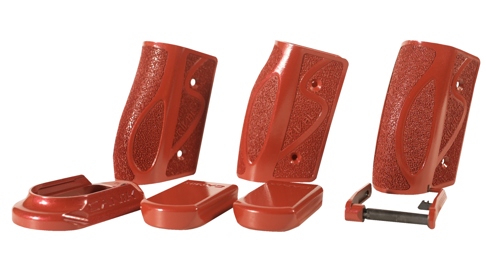 The Canik TP9 Rival-S Accessory Kits in Custom Colour Packs offer a modular ambidextrous design, made of aluminium and easy to install.