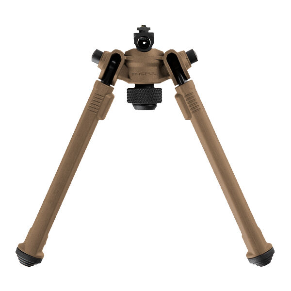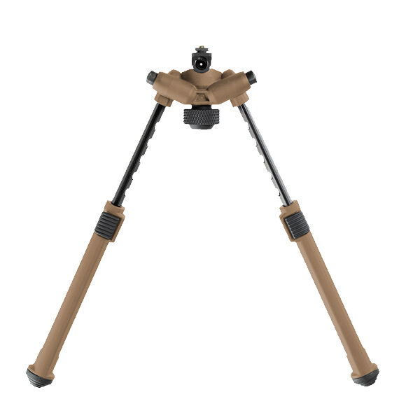 A soft rubber bipod locking knob cap is attached to the locking knob gives users a steady, non-marring forward rest while the bipod is folded. Additionally, its staggered soft rubber feet hold fast on a variety of shooting surfaces and are easily removed with a roll pin punch. Should users choose to change feet, the Magpul Bipod’s legs accept most Atlas pattern bipod replaceable feet, except for the Atlas 5-H style.