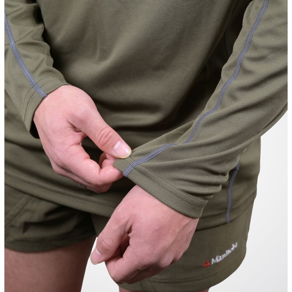 The Manitoba Pursuit V2 Long Sleeve Top is a technical warm-season base layer engineered for high-temperature hunting conditions.