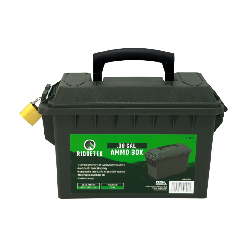 Ridgetek .30Cal Ammo Box with Padlock - OD Green - RL10120