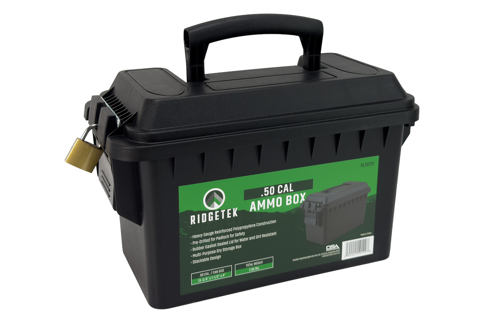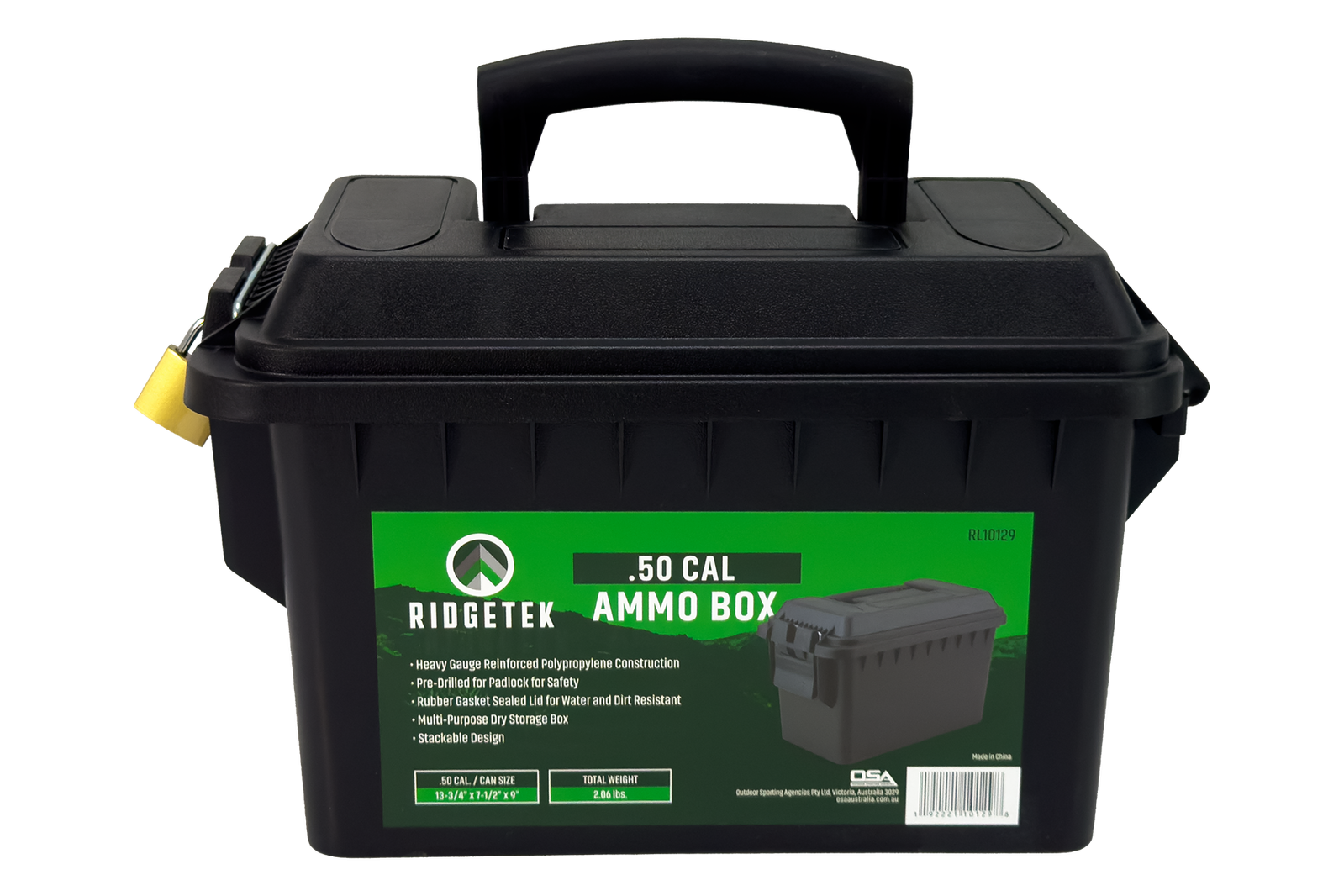 Ridgetek .50Cal Ammo Box with Padlock - Black - RL10129