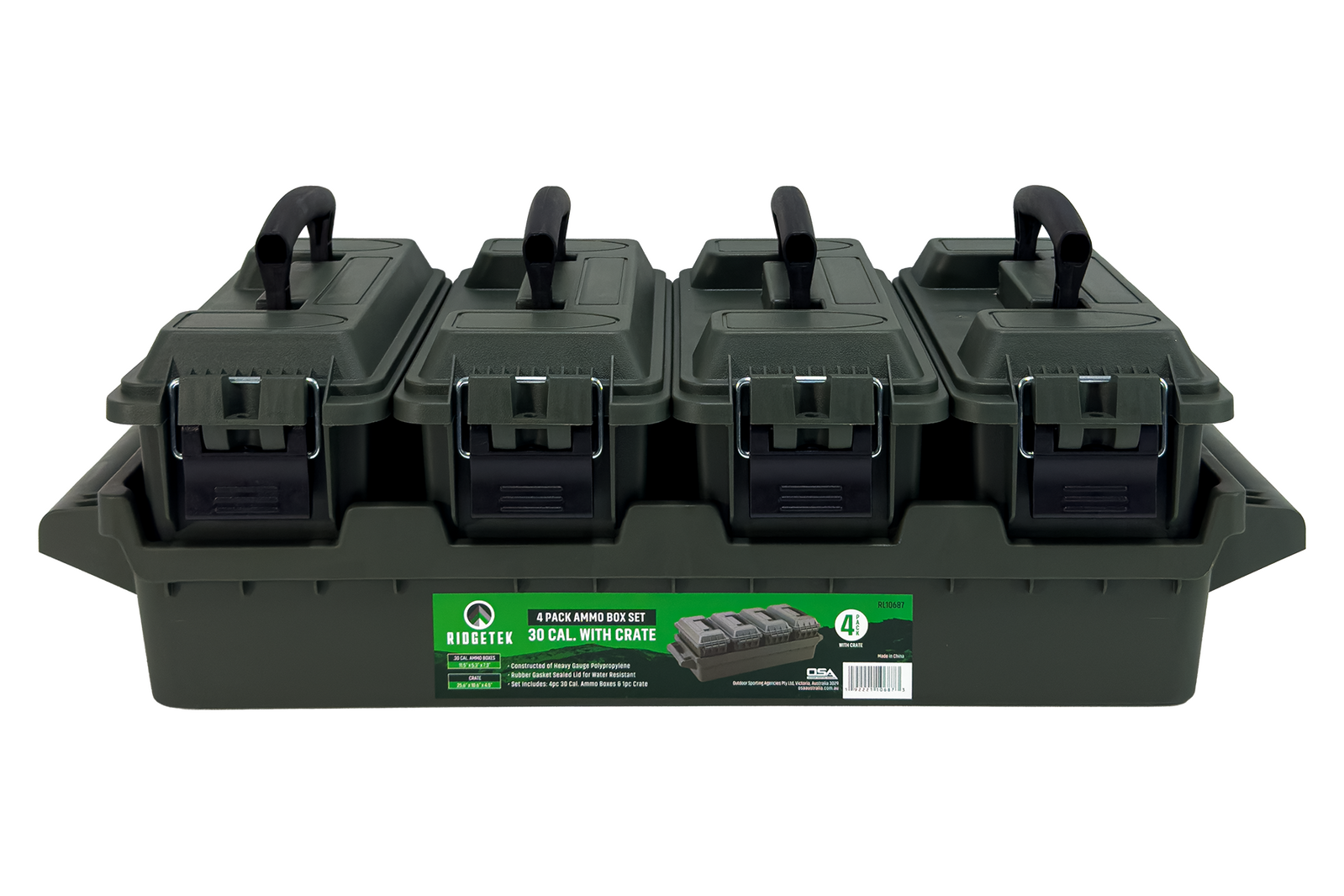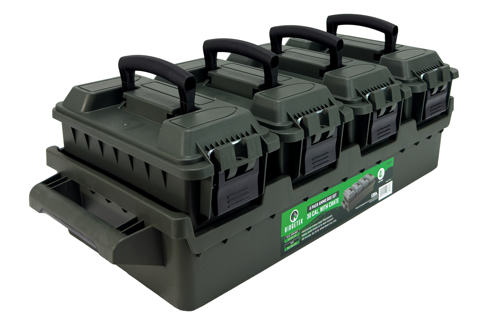 Ridgetek 4-Box .30Cal Ammo Crate with Padlock - OD Green - RL10687
