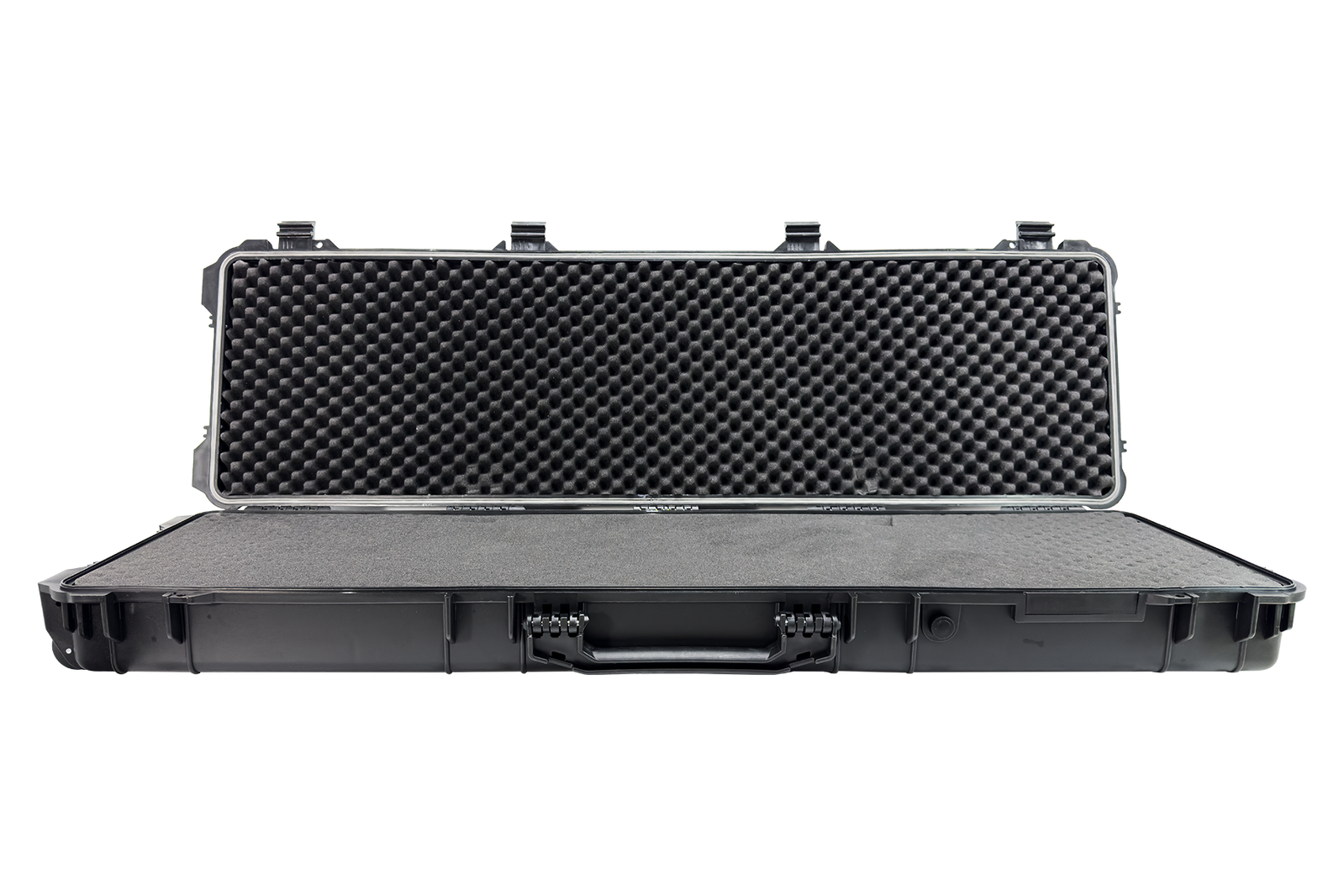 This hard case features reinforced steel-pinned hinges, 4 oversized locking latches, padlock-ready points and a pressure release valve for air travel. With rubber rolling wheels, a rubber-sealed gasket and dual-layer foam (egg crate + medullar), it’s your ultimate firearm storage solution. 1346x406x152mm