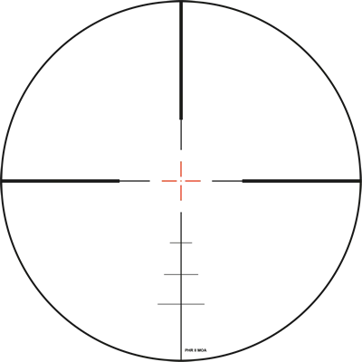 The PHR II shares all the features of the PHR reticle with the addition of a floating center dot for an ultra-refined point of aim as well as a finer 6 oclock post, enabling even more precise elevation hold overs.